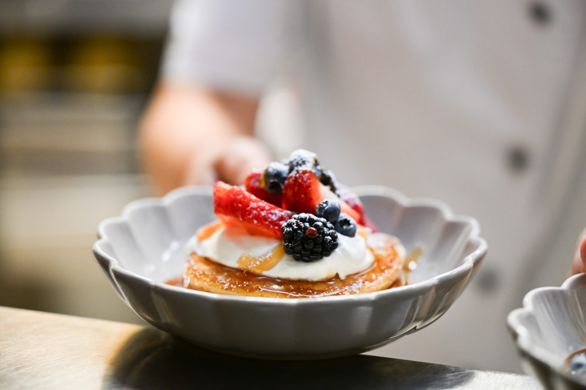 Il cibo. Si spazia da preparazioni dolci fino a quelle salate. Dimenticate i croissant, qui si va su pasti ricchi, ma allo stesso tempo il più bilanciati possibile in fatto di elementi nutrizionali. La parte proteica, data da salmone affumicato, yogurt, uova, salsa olandese o prosciutto cotto, ma anche il bacon, poi la parte del carboidrato, con le granole home made, i pancakes, ma anche le fette di pan bauletto, infine non mancano i superfoods come i piccoli frutti, la frutta fresca o l’avocado nelle preparazioni salate, fresco o in salsa. Niente zucchero, ma miele o sciroppo d’acero. E poi le torte, ovviamente in stile anglosassone.