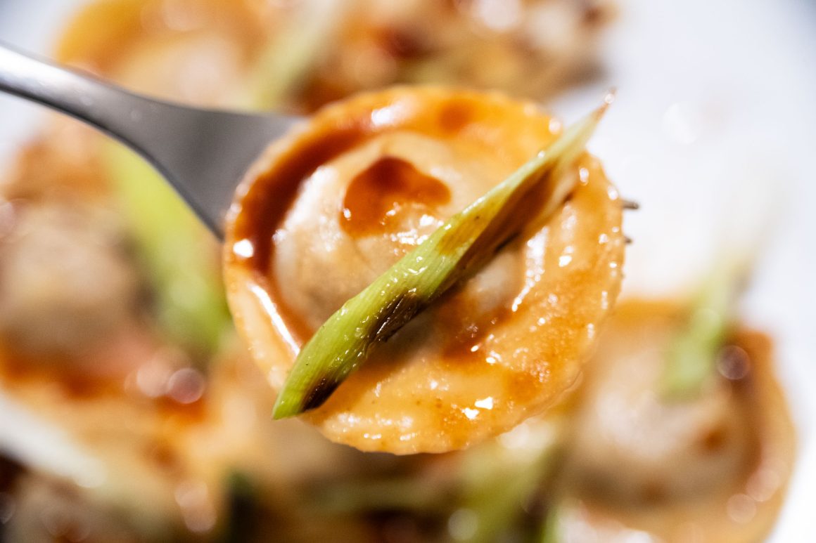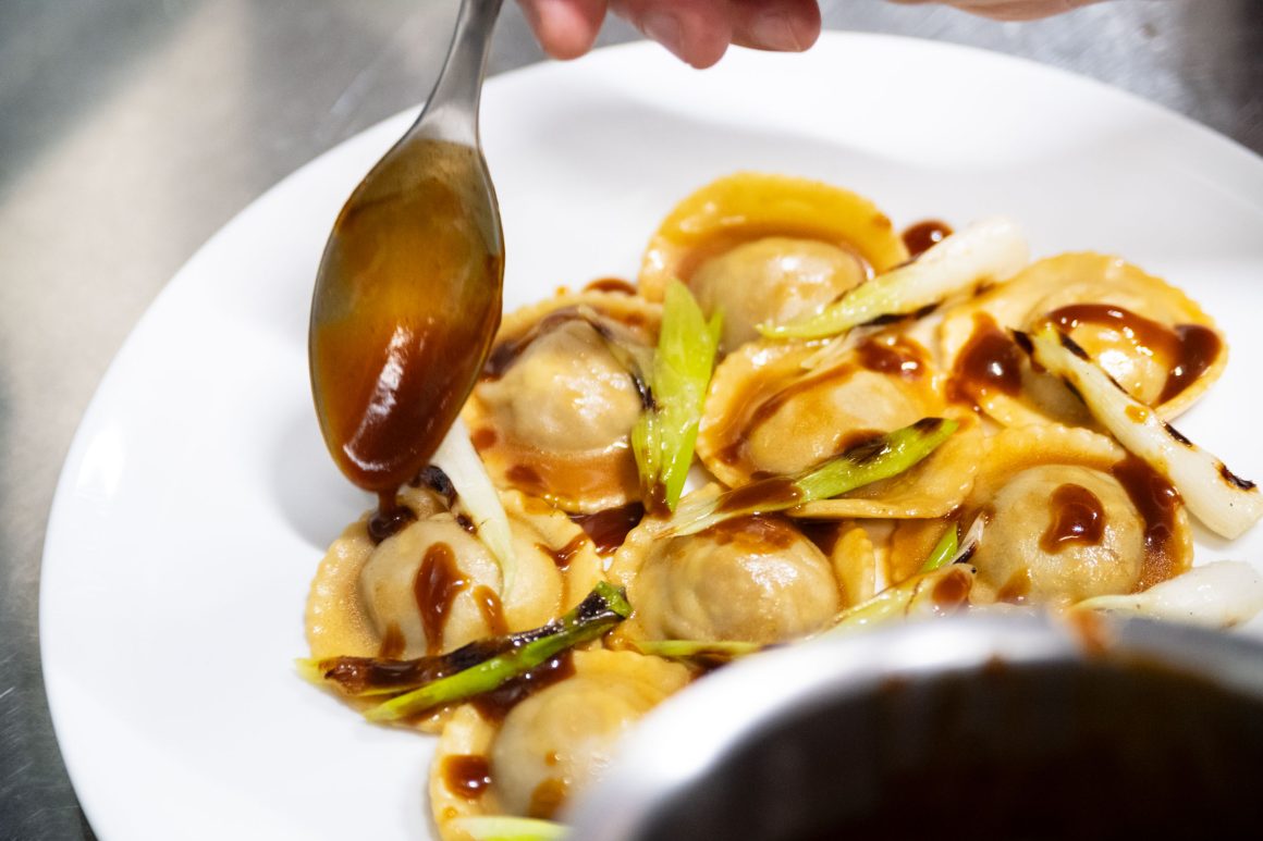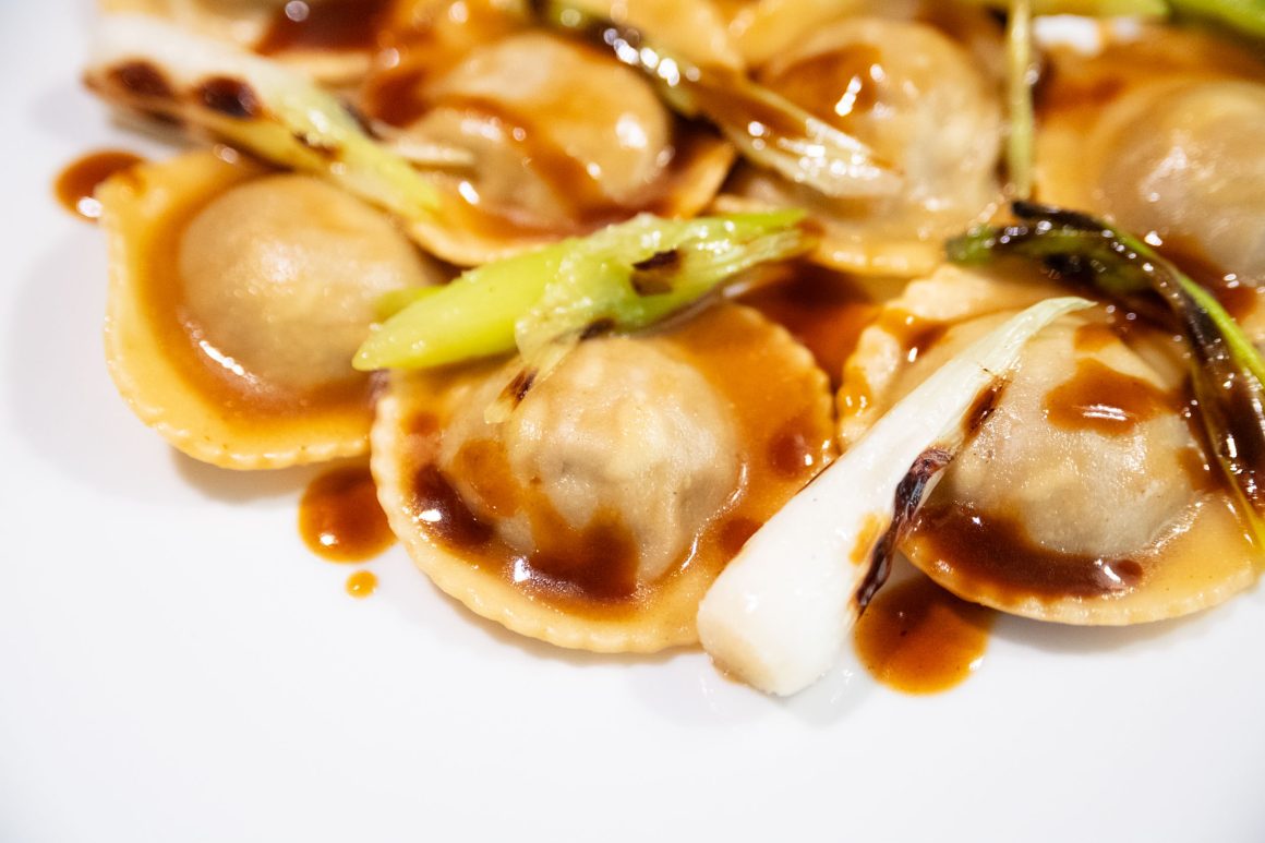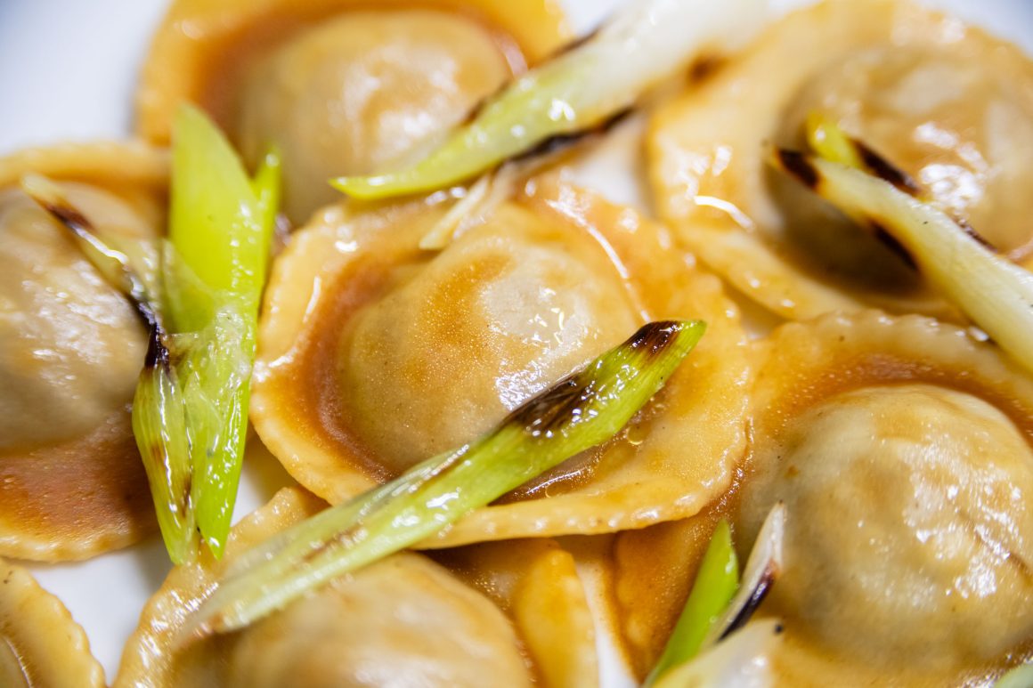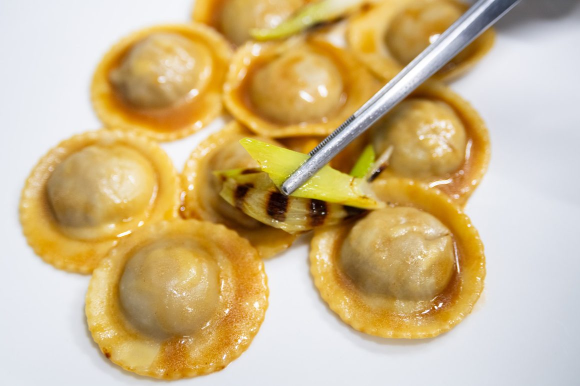 I ravioli ripieni di fegatini di pollo con cipollotto alla brace di Andrea