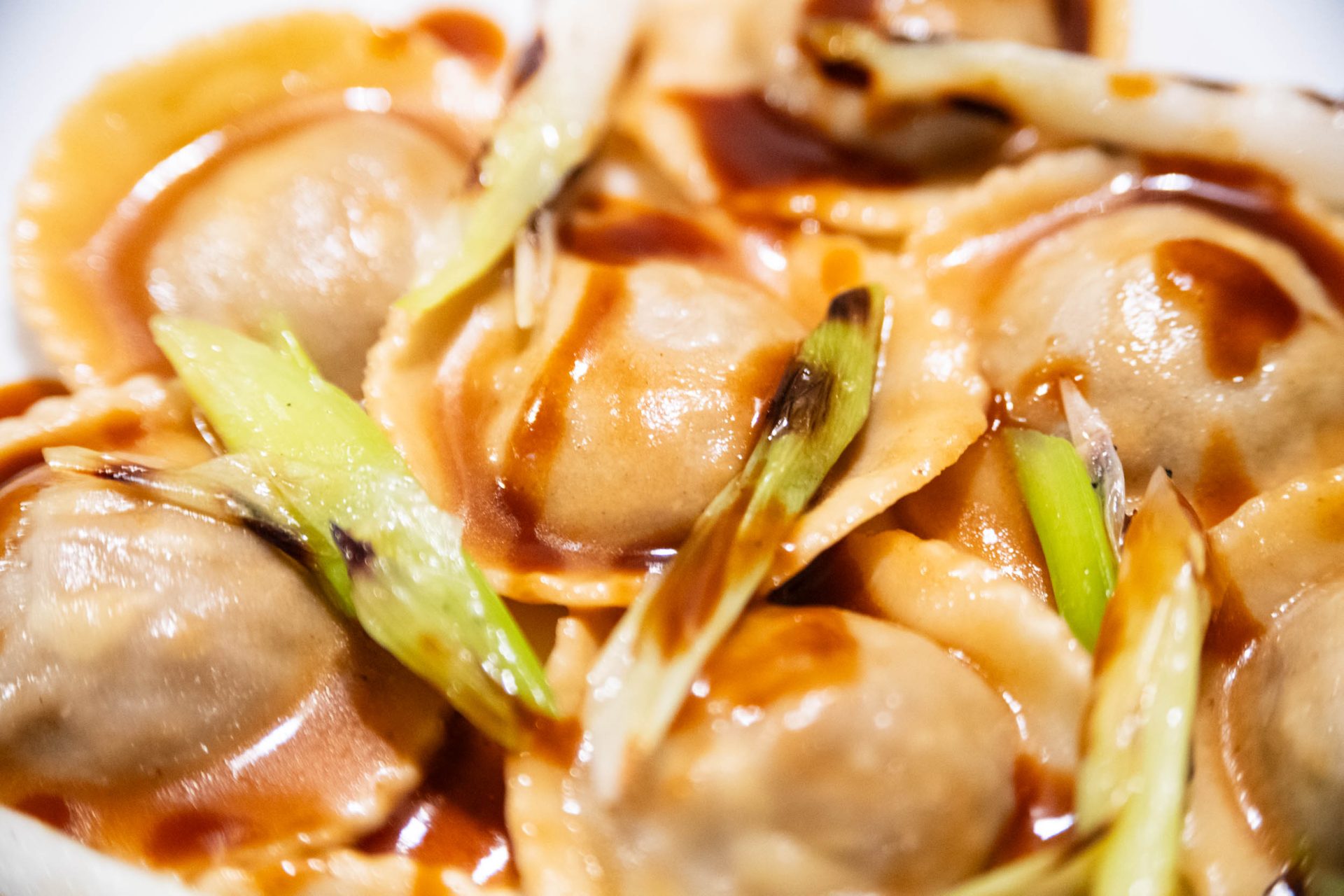 I ravioli ripieni di fegatini di pollo con cipollotto alla brace di Andrea