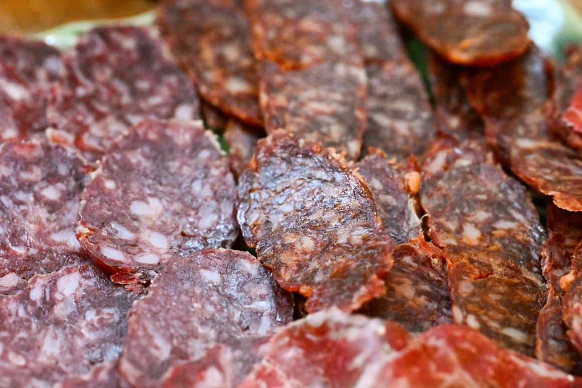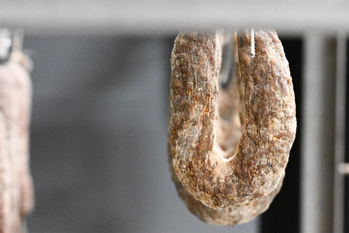 Essi sono animali che nascono, vivono e vengono trasformati proprio all’interno dell’azienda, che dispone di un laboratorio dedicato alla macelleria, un luogo per la vendita e un luogo specifico per la trasformazione e stagionatura delle carni in salumi al 100% preparati con carne bovina, grasso compreso. Salumi estremamente delicati, caratterizzati dalla dolcezza per la presenza del tipico grasso, ben bilanciata alla fine sapidità.